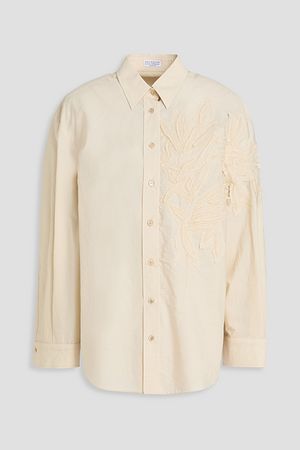 With so many shirts in my closet, nowadays I treat them to a bit of a bespoke upgrade. I’ll get them embroidered with my initials or those of my loved ones on the bottom left-hand side, usually placed where the initials are not visible when worn under a jacket. It used to be that men’s shirts were embroidered with their initials in order to identify them at the laundry, but for myself, the tiniest embroidered initials on my shirts give me a bit of soulfulness and comfort, and a way to make my shirts a part of me, rather than just a piece of clothing. I like that they hark back to the traditional but knowing that I try to live my life stepping out of the expected boxes, my oversized boyfriend shirts come along for the ride that is this adventure of life. So, thanks for that, Audrey!