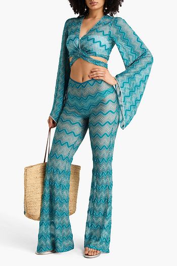 Metallic crochet-knit coverup