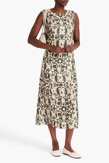 Printed cotton-poplin midi dress