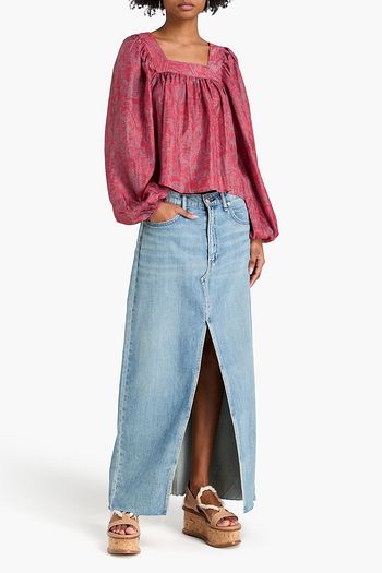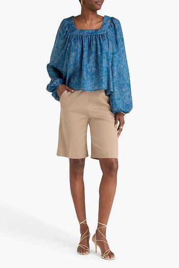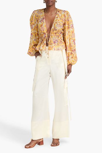 Floral-print cotton-blend blouse