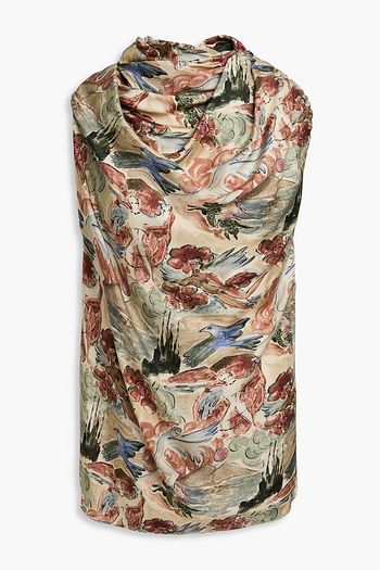 Draped printed silk-twill top