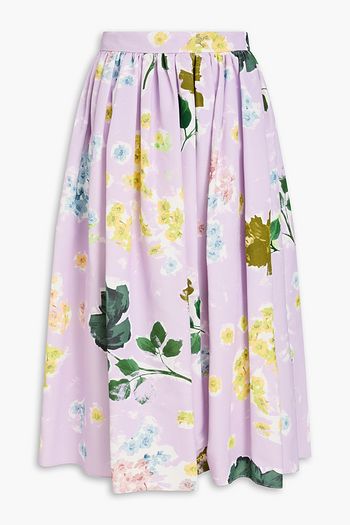 Gathered printed cotton-blend faille midi skirt