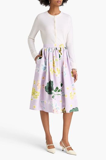 Floral-print cotton-blend faille midi skirt