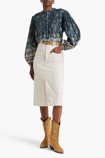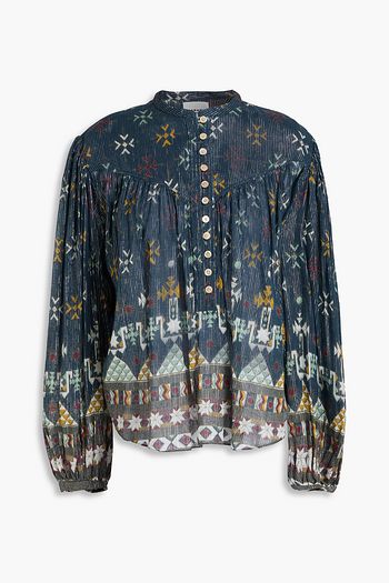 Shirred floral-print crepon blouse