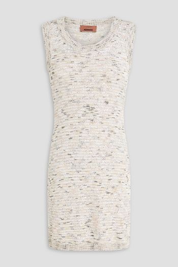 Sequin-embellished crochet-knit mini dress
