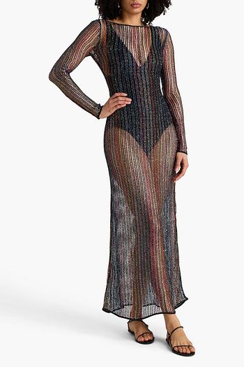 Cutout metallic crochet-knit maxi dress