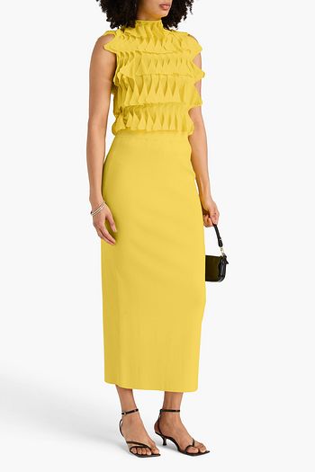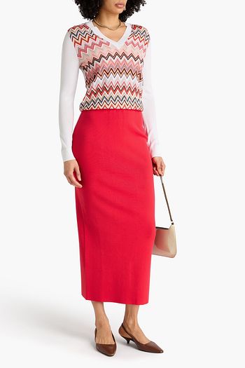 Striped ribbed cotton-blend pencil skirt