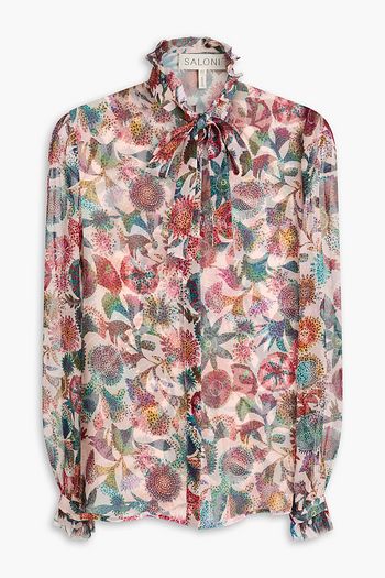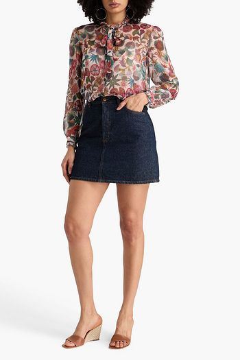 Marlowe bow-detailed printed silk-twill and cotton broderie anglaise top