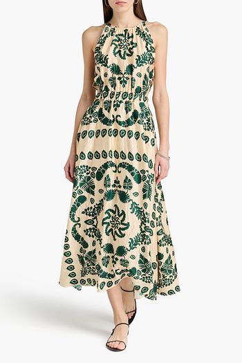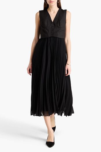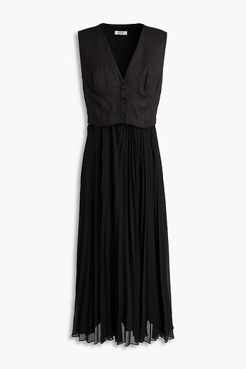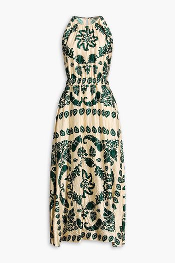 Crystal-embellished cutout crinkled satin-twill midi dress