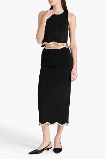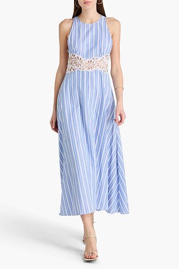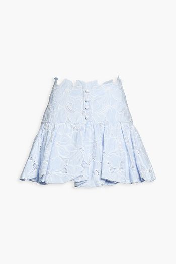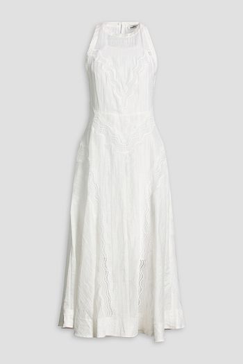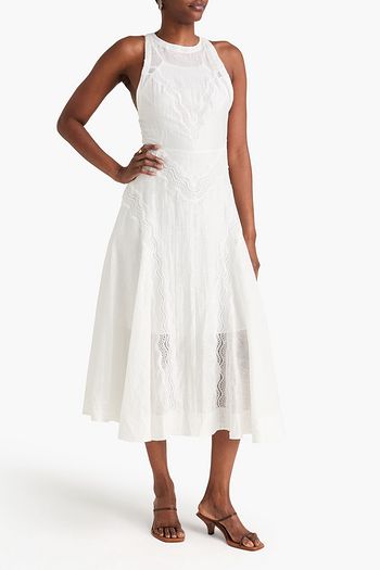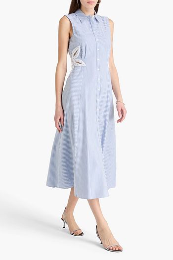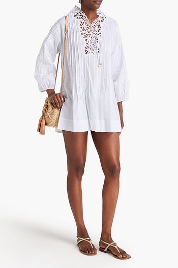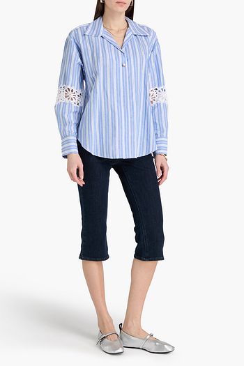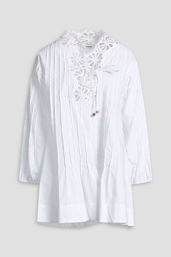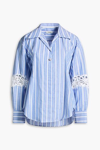 Cropped lace-trimmed cotton-poplin blouse