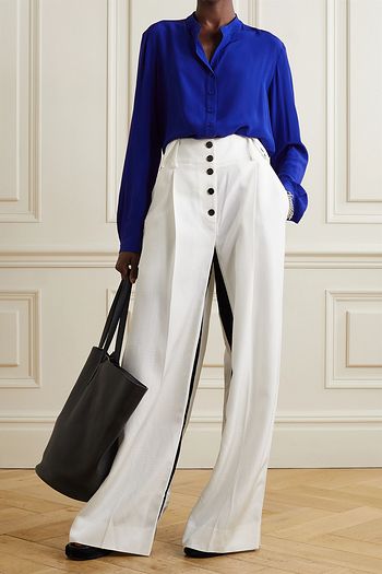 Color-block silk crepe de chine top