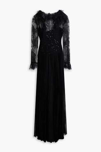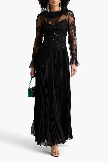 Pleated embellished silk-chiffon maxi dress