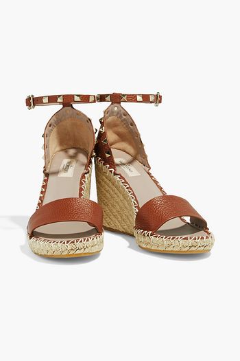 Rockstud pebbled-leather wedge espadrille sandals