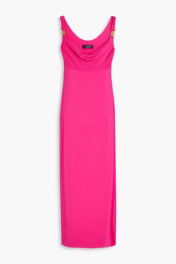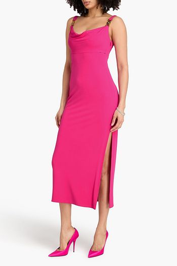 Pleated embellished stretch-cady dress