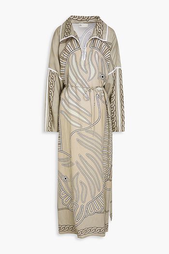 Printed linen and silk-blend kaftan