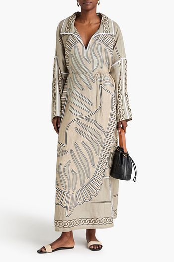 Embroidered cotton-blend kaftan