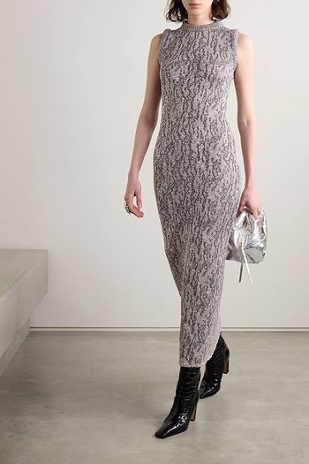 Rhea metallic ribbed-knit midi dress