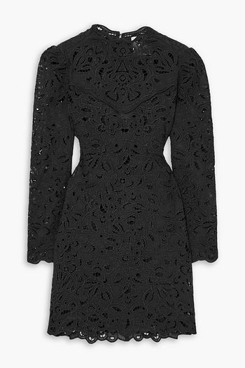Renee gabardine-aneled broderie anglaise cotton-blend mini dress