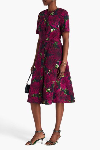 Printed cotton-blend poplin midi dress