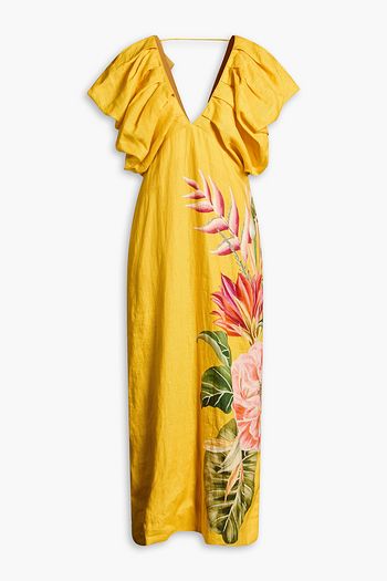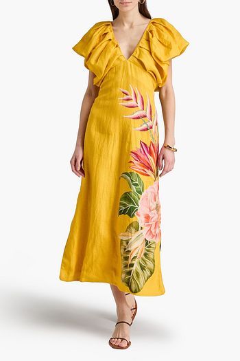 Ruffled floral-print georgette midi dress
