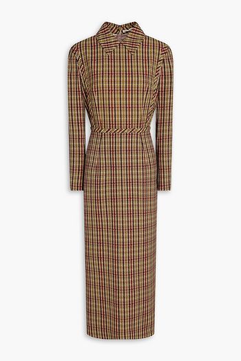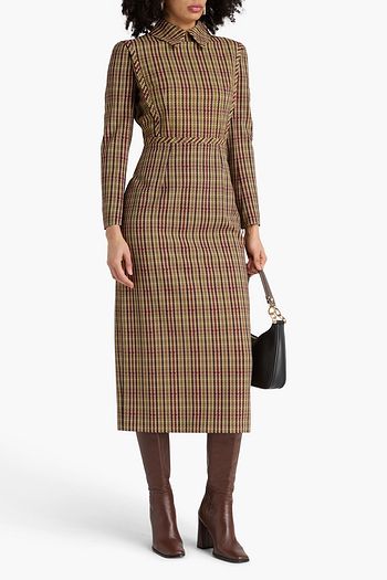 Gathered printed satin-crepe midi dress