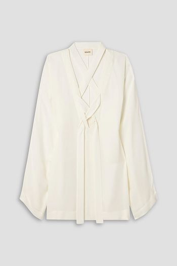 Belted draped silk-crepe midi dress