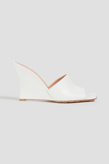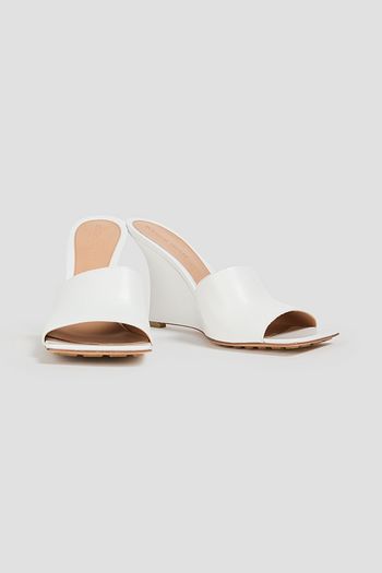 Stretch leather wedge mules