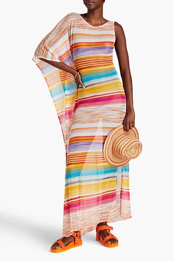 Mare asymmetric striped knitted coverup