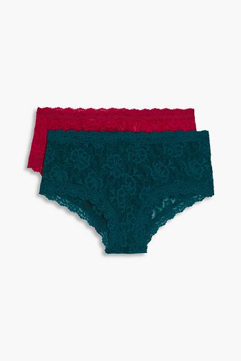 Set of two Signature stretch-lace mid-rise briefs