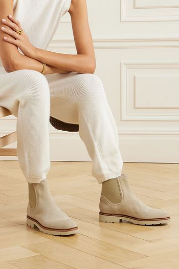 Broderie anglaise-trimmed stretch-mesh ankle boots