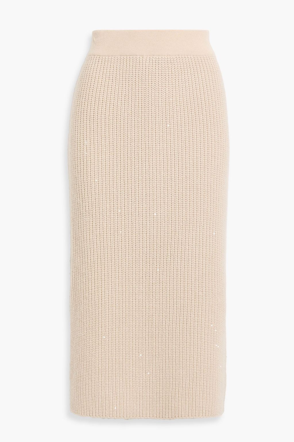 BRUNELLO CUCINELLI Sequin-embellished cashmere and silk-blend midi skirt