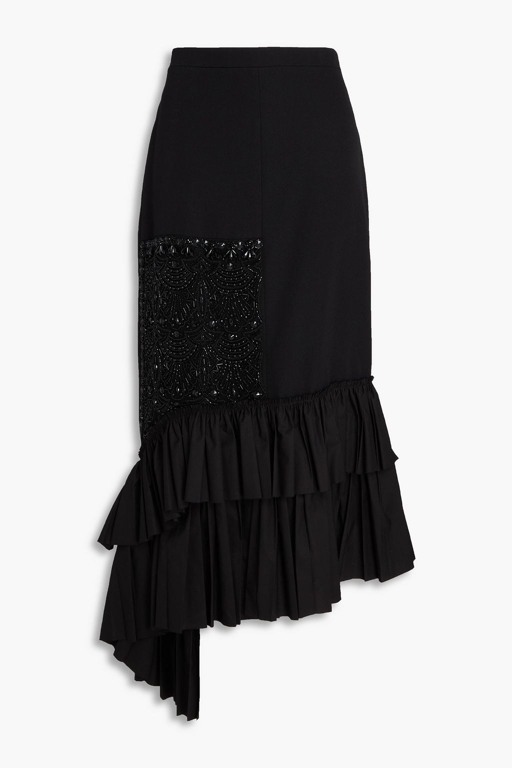 ERDEM Asymmetric embellished grain de poudre wool maxi skirt