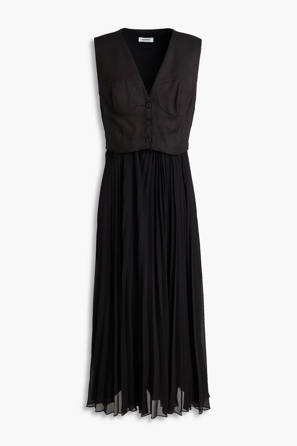 SANDRO Linen-blend twill and georgette midi dress