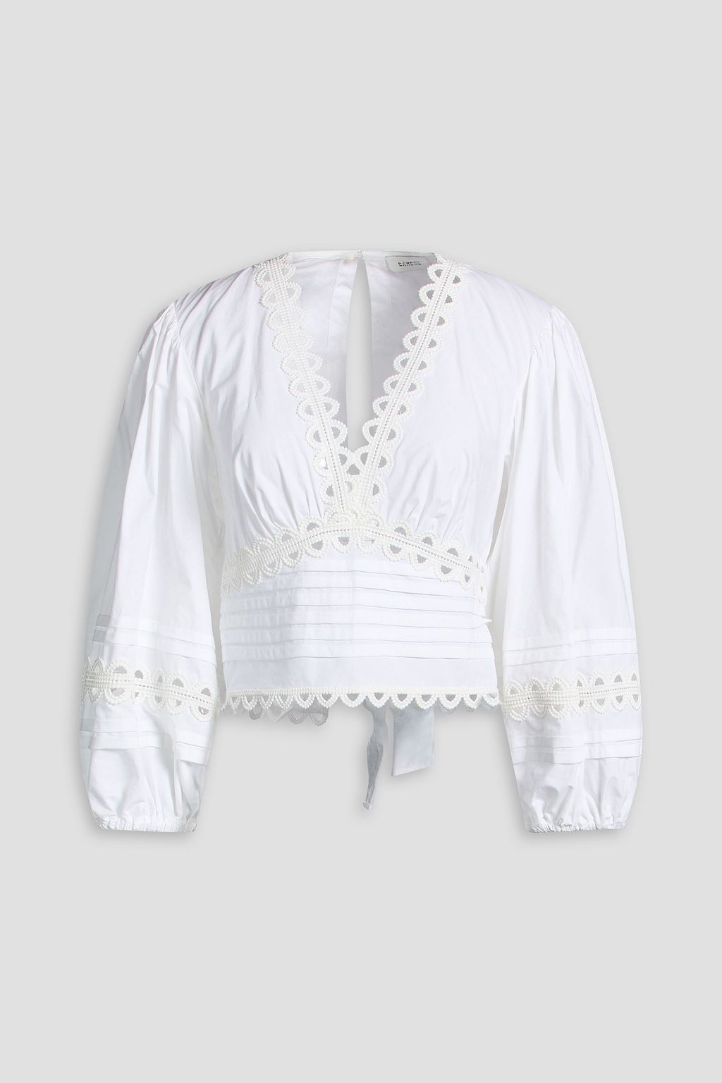 SANDRO Cropped lace-trimmed cotton-poplin blouse