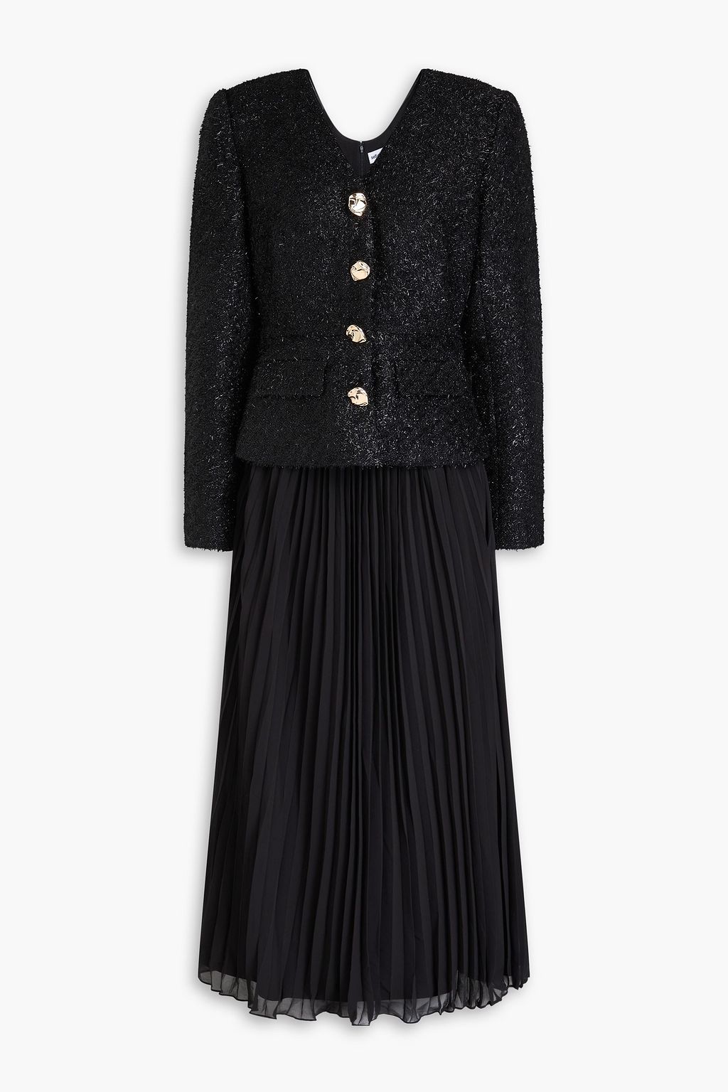 SELF-PORTRAIT Embellished pleated georgette and tweed midi dress