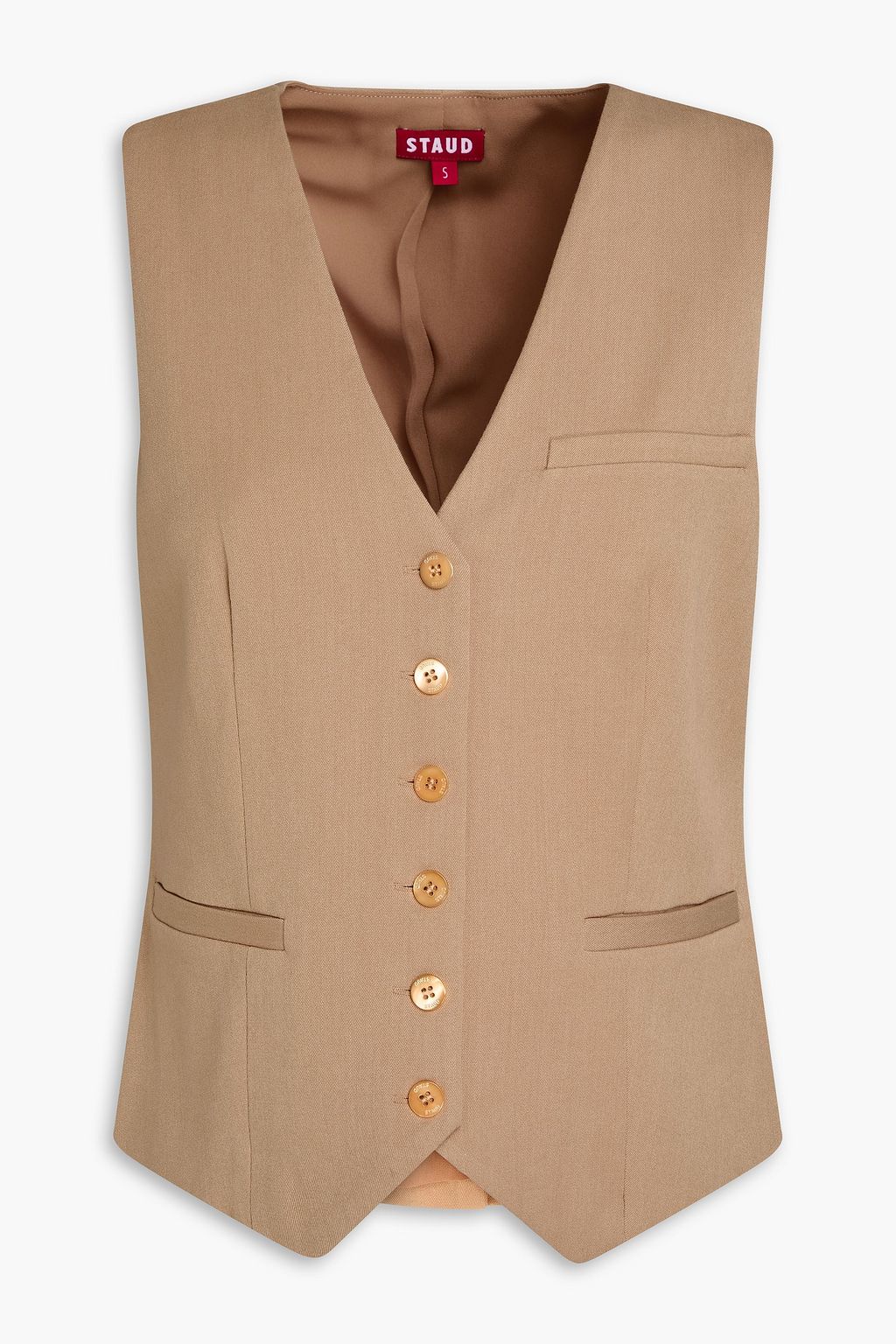 Mid-weight, slightly stretchy fabric with non-stretchy lining