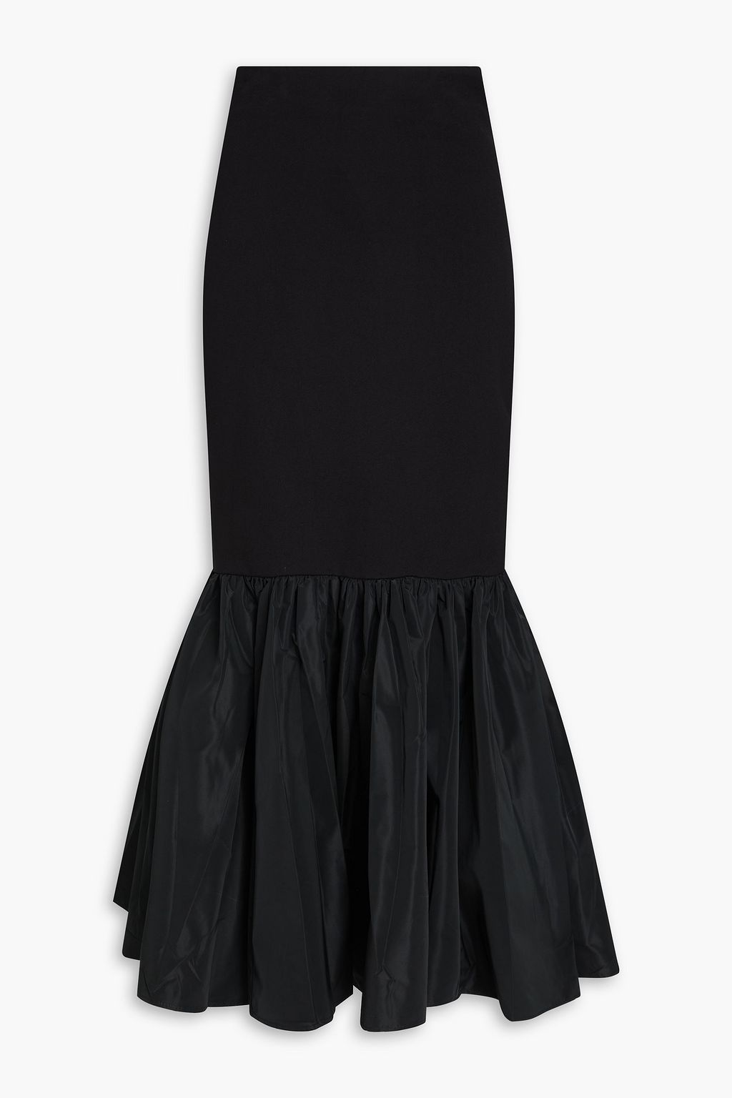STAUD Hawthorne fluted jersey-paneled taffeta maxi skirt