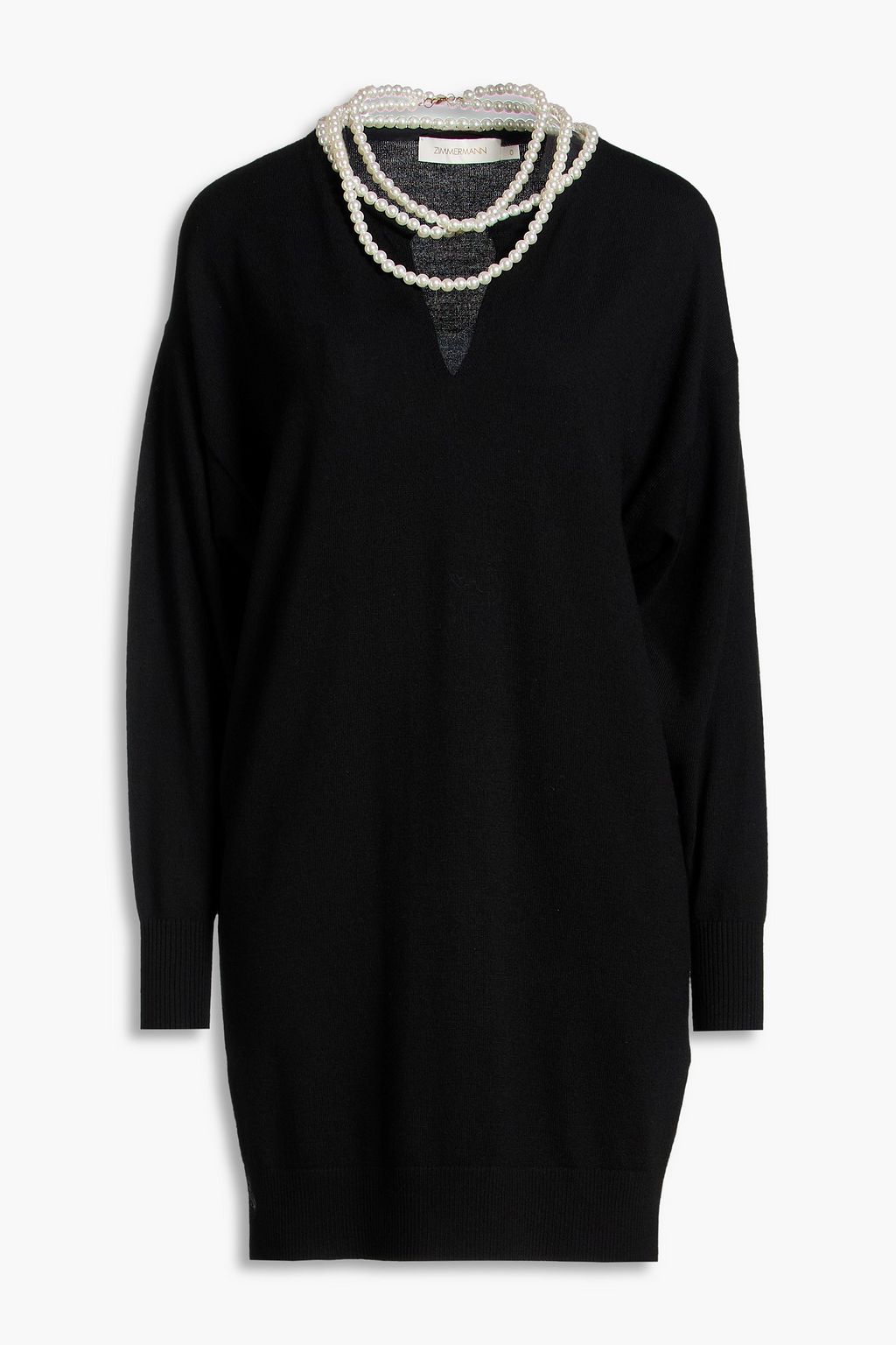 ZIMMERMANN Faux pearl-embellished wool mini dress