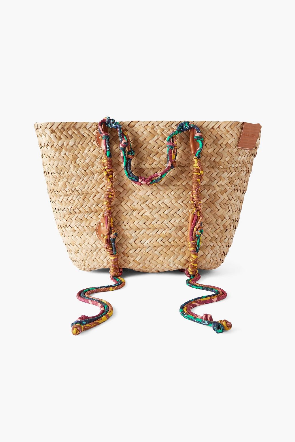 Zimmermann's spirited take on the classic basket bag makes a versatile addition to your vacation wardrobe. It's woven from raffia and detailed with leather accents and colorful macrame straps. Wear yours with everything, from sundresses to swimwear.
