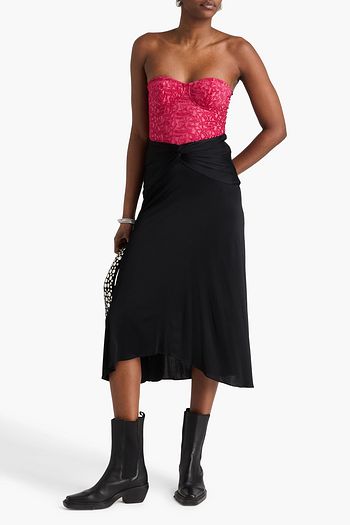 Wrap-effect printed silk-blend crepe de chine midi skirt