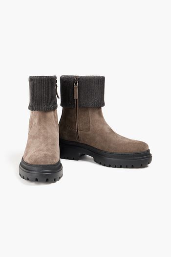 Nellie suede and ribbed-knit ankle boots