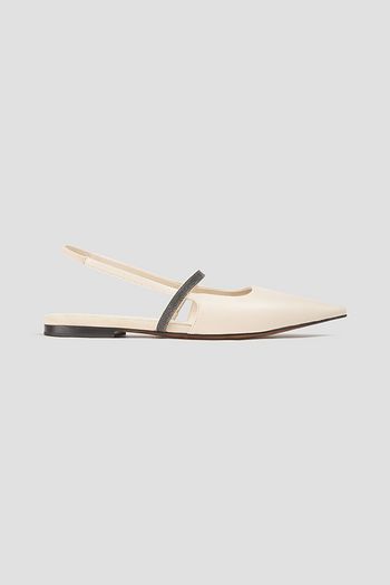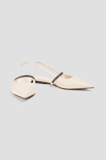 Rockstud bow-detailed patent-leather slingback point-toe flats