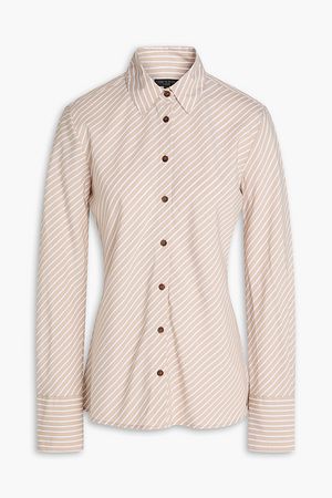 I do have a collection myself of quite traditional blue-pinstriped with button-down collared shirts in varying shades and stripes (it IS possible to be addicted to striped shirting!), but I’ll style them differently. Sometimes layered on top of a horizontal marinière tee, tucked into a pair of khaki trousers or buttoned all the way to the top except the last two bottom buttons, cinched in at the waist over a long-pleated skirt to give more volume from the top. I also have a myriad of baby pink and lemon sorbet shirts — colors not usually associated with the boyfriend shirt, that I’ll style for day or night. The artist Georgia O’Keefe always inspires me with her masterful balance of the masculine and feminine way of dressing, and I love the way she would roll up her sleeves just so or play with the proportion and cut of a collar and color.