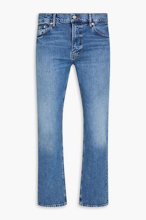 So, where does one find the perfect fit? For a worn-in, carefree, fresh-from-the-ranch look, consider distressed and disheveled styles. Amiri does a good game in rough, tough and ready versions. Versatility is the calling card of a great straight-fit jean, allowing us to think outside the box when it comes to outfitting. Bold knitwear (this N.Peal number is a worthy choice), worn with a mid-blue wash and a white sneaker feels cool, easy and classic.