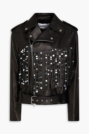 Cropped embellished leather biker jacket