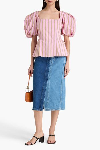 Coralee poplin-paneled Pima cotton-blend jersey top