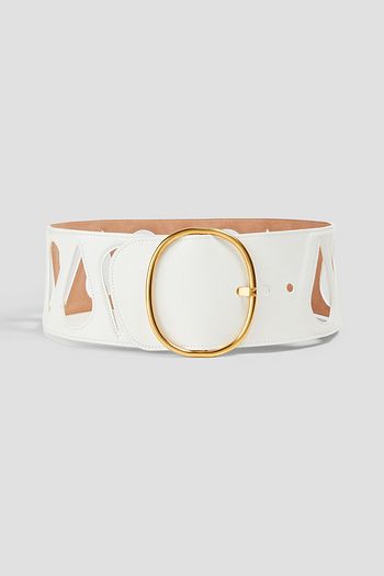 Eyelet-embellished leather belt