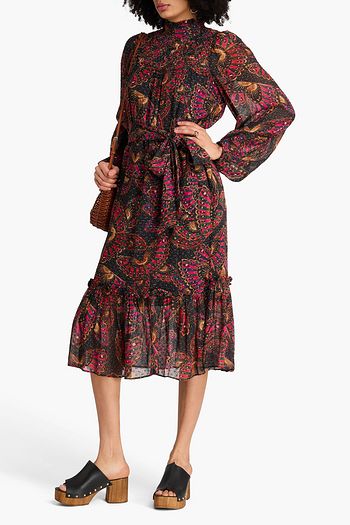 Smocked printed cotton-voile midi dress