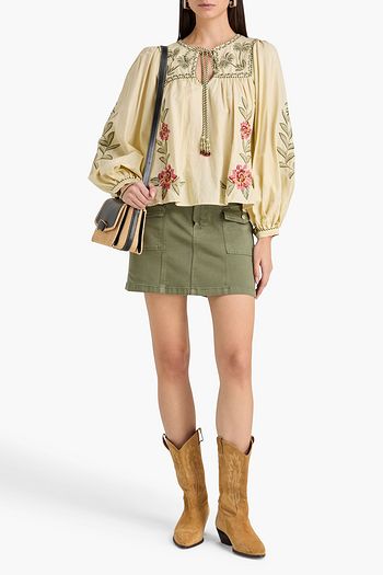 Embroidered linen-blend blouse