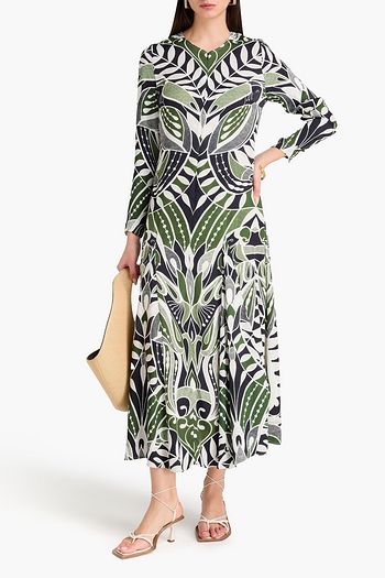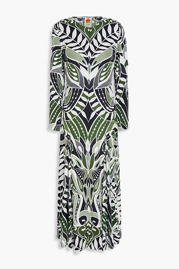 Draped bead-embellished printed crepe de chine maxi dress